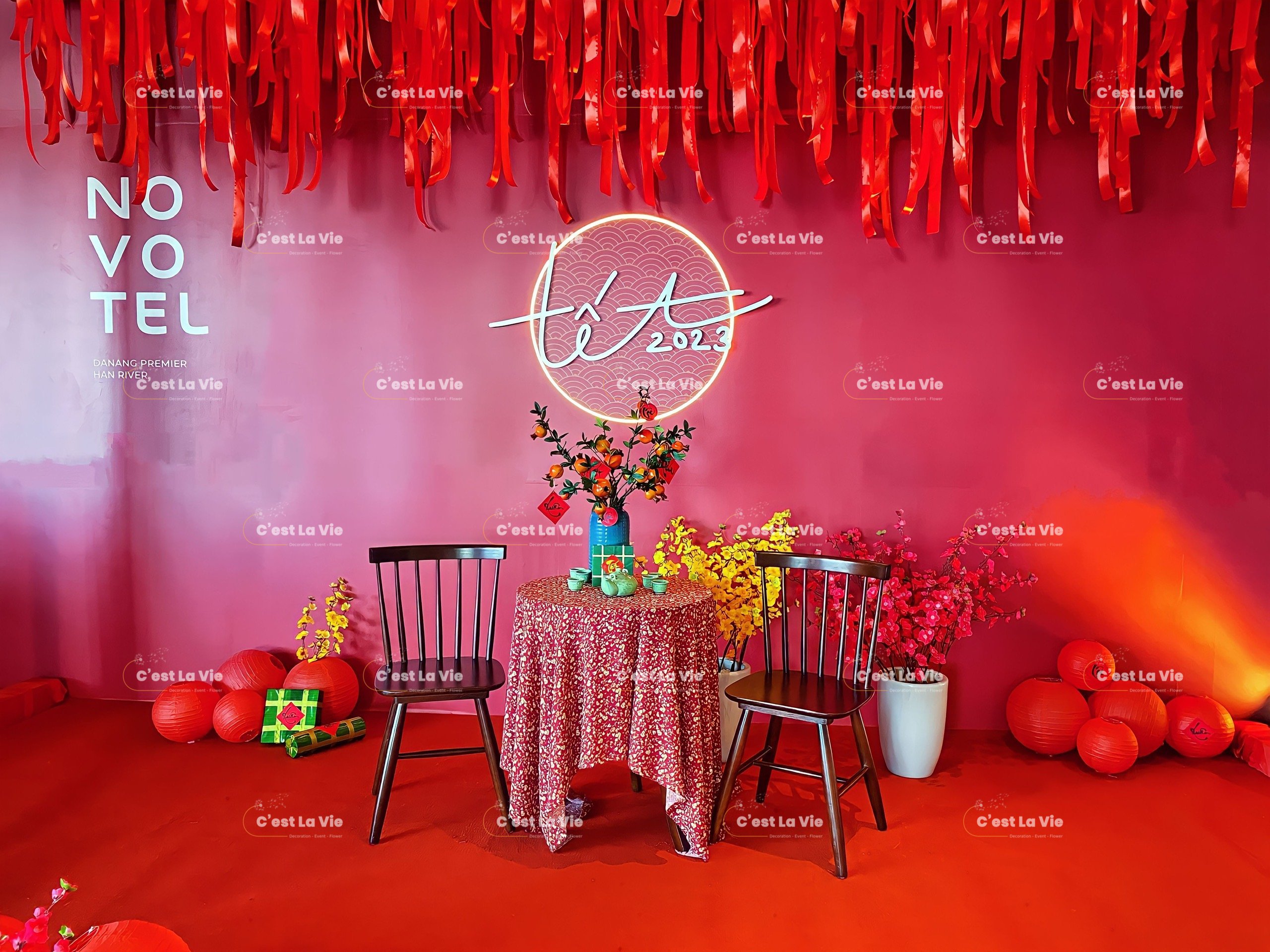 In the era of economic development, Tet decoration services for companies are becoming increasingly popular. Although it may seem like a small action, decorating for Tet brings many benefits, creating a lively and comfortable atmosphere for employees. It also helps customers have a favorable impression of the business. C’est La Vie specializes in providing Tet decoration services for company offices in Da Nang.