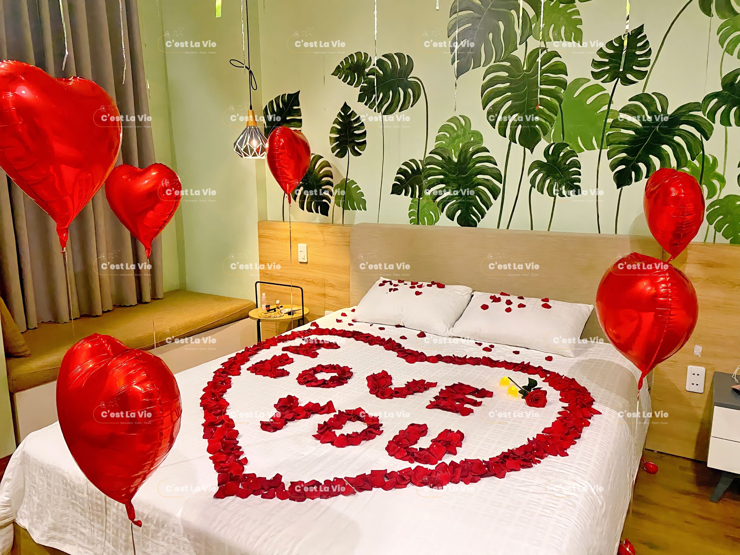 For couples, the love anniversary is a very important day. C’est La Vie helps you choose a venue for the proposal, book a restaurant or hotel, and also provides decorations such as love anniversary backdrops and sweet, romantic table settings for the couple.
