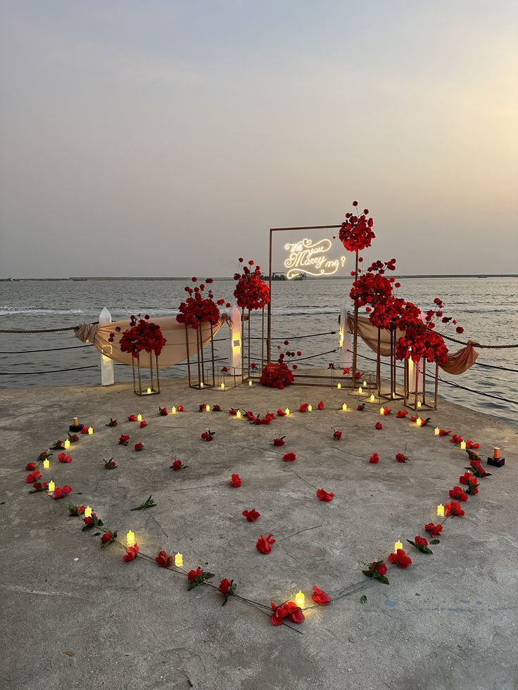 "Marry Me" LED lights or soft lighting create a romantic atmosphere.