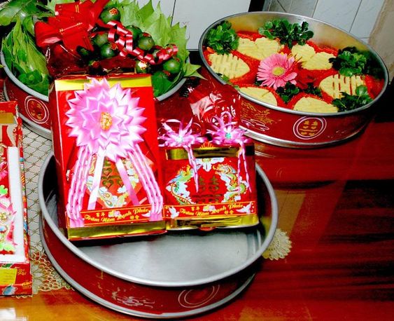 Another special thing about the Southern wedding tray is that the mother-in-law will prepare a tray of clothes including a long dress and a pair of earrings. This implies that the daughter-in-law will be cared for by her husband’s family as when she was still living with her biological parents.