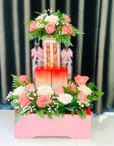 Engagement and wedding trays are quite similar, but wedding trays have more gifts and elaborate decorations, so the price is higher.
